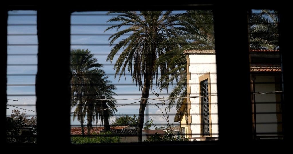 Geographer Jay Appleton, in his book The Experience of Landscape talks about the human response to being in a place of safety where one can look out into the landscape, framed as prospect and refuge. Our rooftop outpost above the Powerhouse Café allowed us a secluded vantage point to film over the Buffer Zone in a way that mirrored the lookout posts of the soldiers along the Green Line. Near Trikoupi Street, the guards’ feet were only two meters above street level but it was easy to miss them as they looked down on the passers-by below. As we began filming we were unsure of the etiquette around the Buffer Zone, nor the legal strictures since there were many signs proscribing filming the guard posts and fortifications in the south, and the Turkish soldiers to the north seemed even more forbidding.